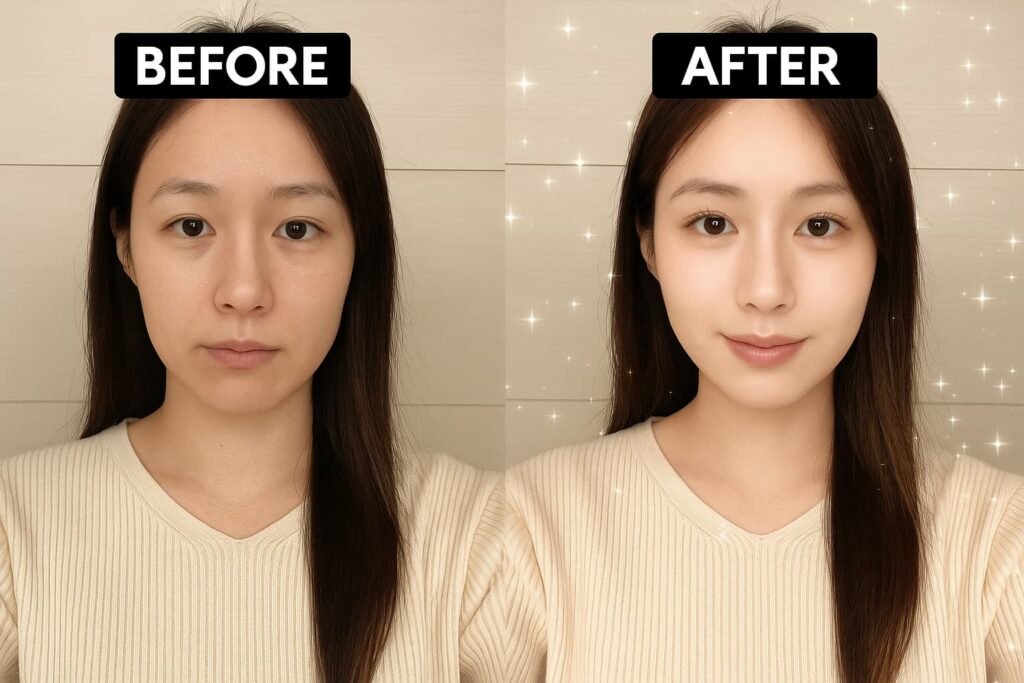 2. 涙袋ぷっくり: 韓国アイドルのような、うるんだ魅力的な目元を演出できます。自撮り動画のクオリティが格段にアップします。