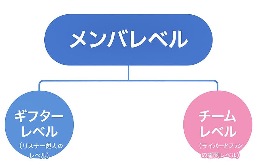 このセクションでは、多くの人が混同している「メンバーレベル」という言葉が指す2つのシステム、「ギフターレベル」と「チームレベル」の根本的な違いと、それぞれの役割を誰にでも分かるように解説します。ここを理解するだけで、あなたのライバー活動の解像度は一気に上がります。