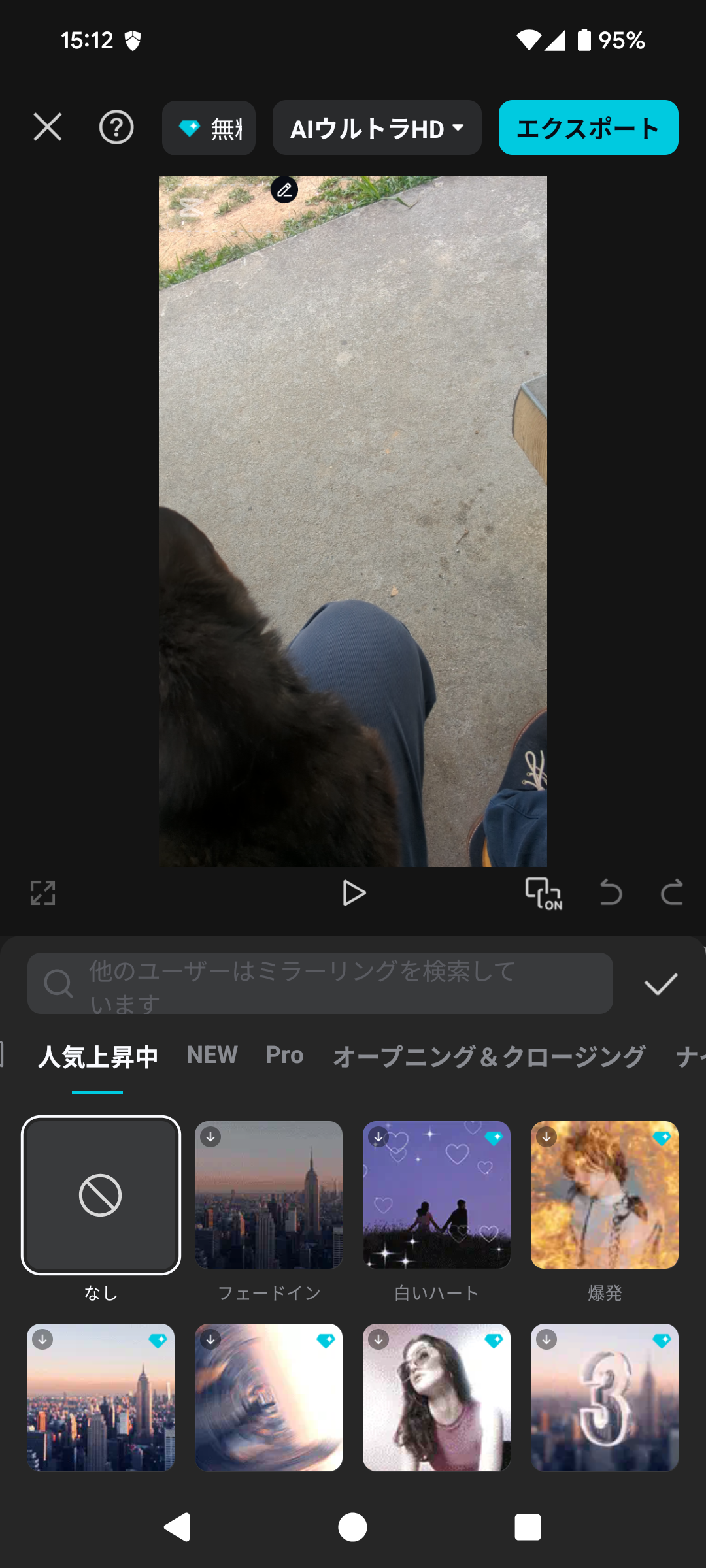 気になるデザインをタップするだけで、あなたの動画にプレビューが適用されます。色々なものを試して、動画の雰囲気に合うお気に入りの1つを見つけてください。デザインが決まったら、右側のチェックマーク✔をタップして確定します。