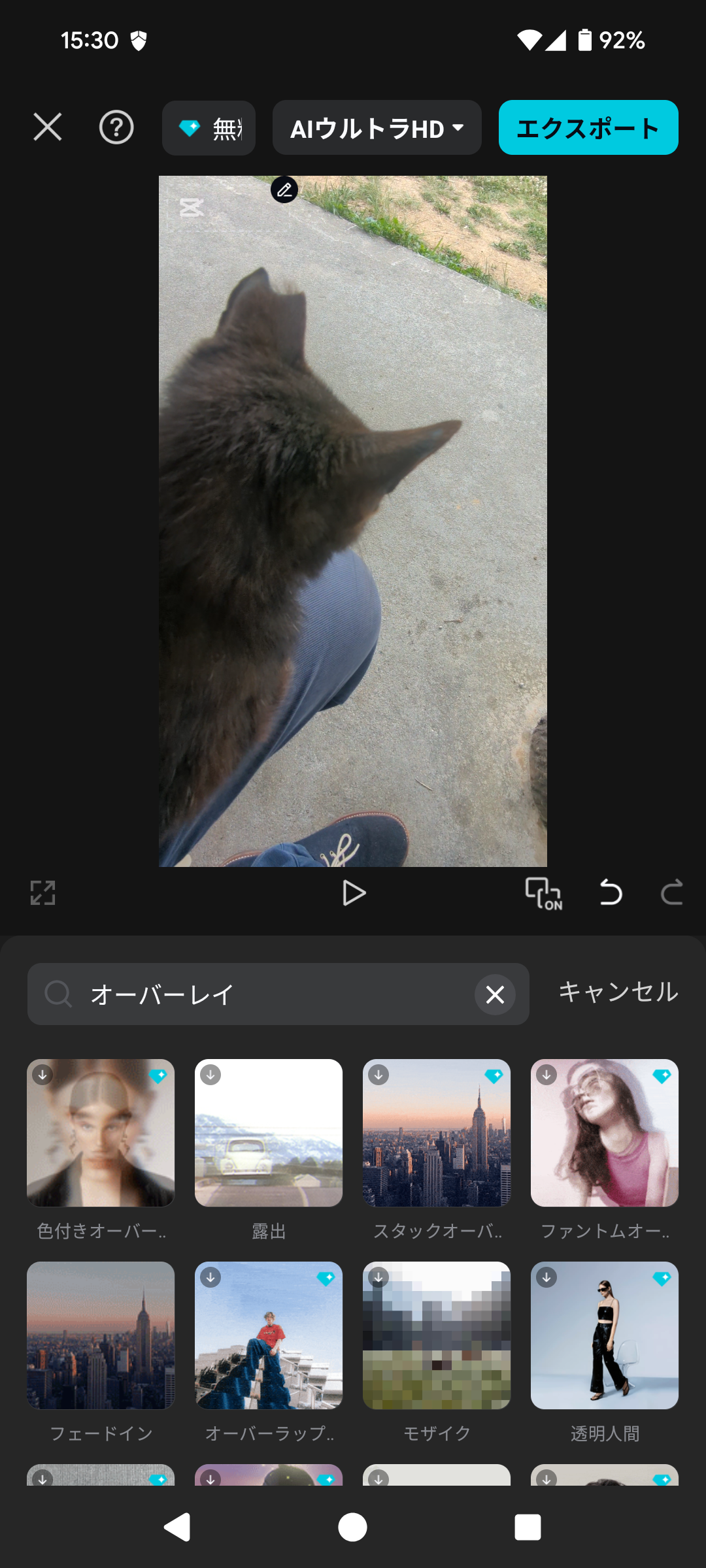 下のメインメニューから「オーバーレイ」(四角が2つ重なったアイコン)をタップし、次に「オーバーレイを追加」を選びます。