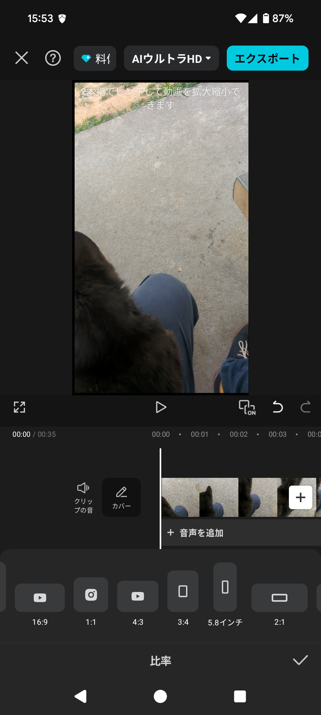 (もし元の動画が9:16なら、この操作をしても変化はありません)